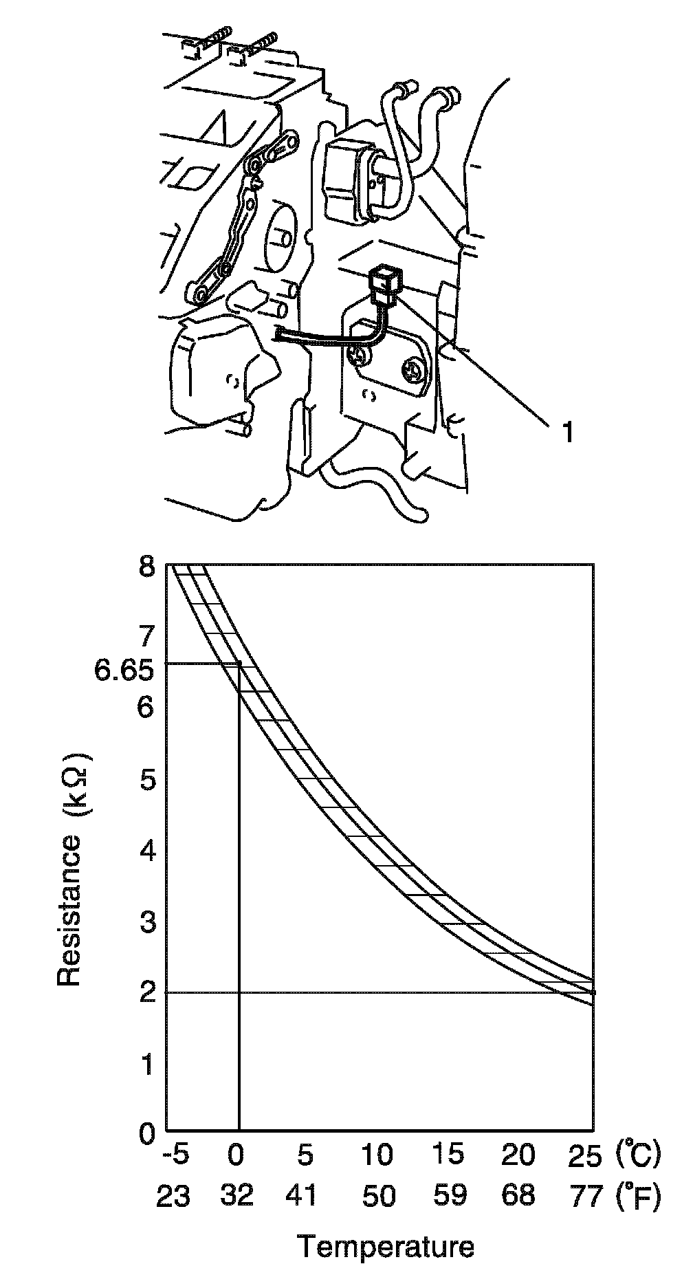 0 °C (32 °F): 6.4 - 6.9 kilo ohm.