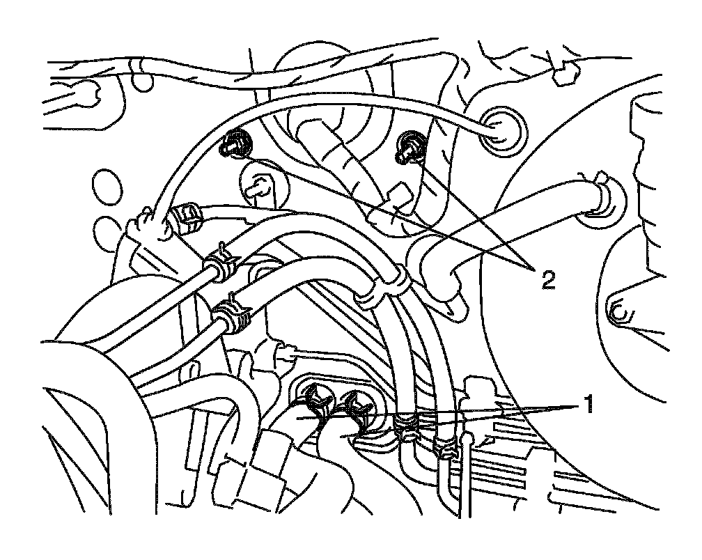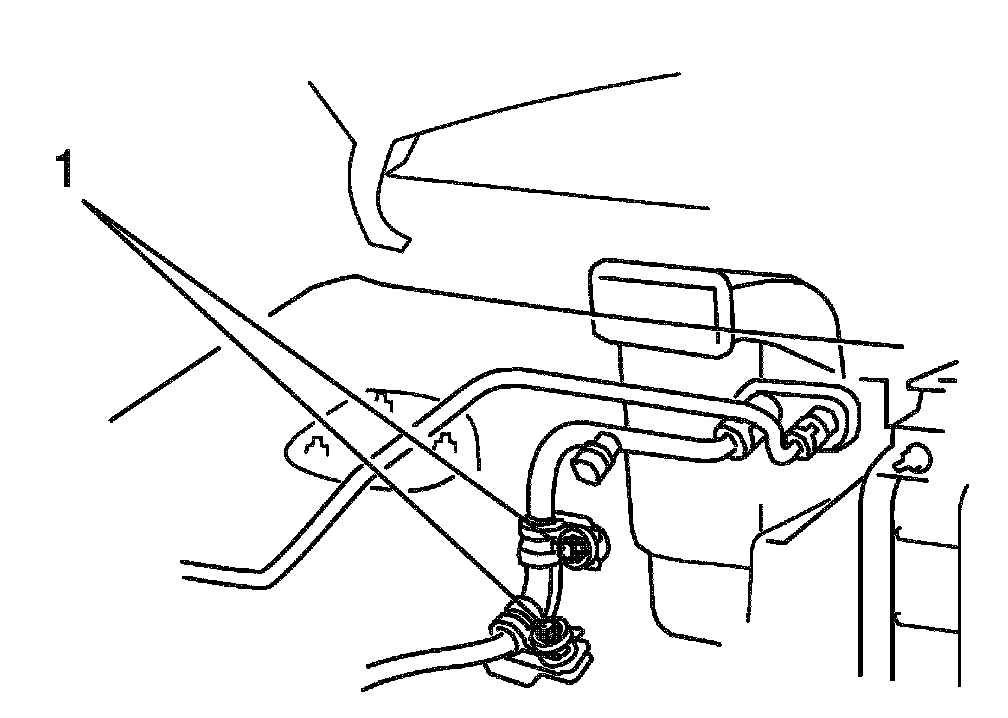 5. Drain engine coolant and disconnect heater hoses (1) from heater unit.