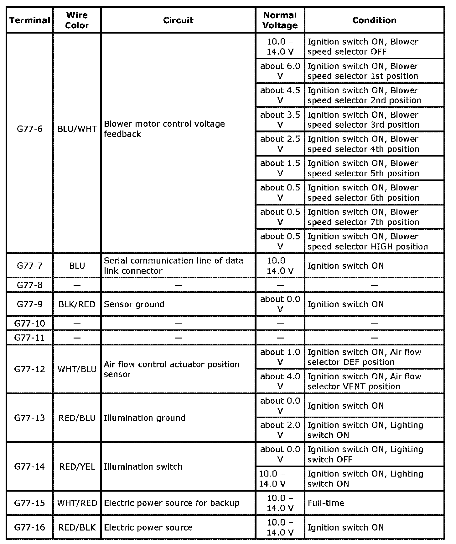 HVAC Control Module Voltage Table Part 1: