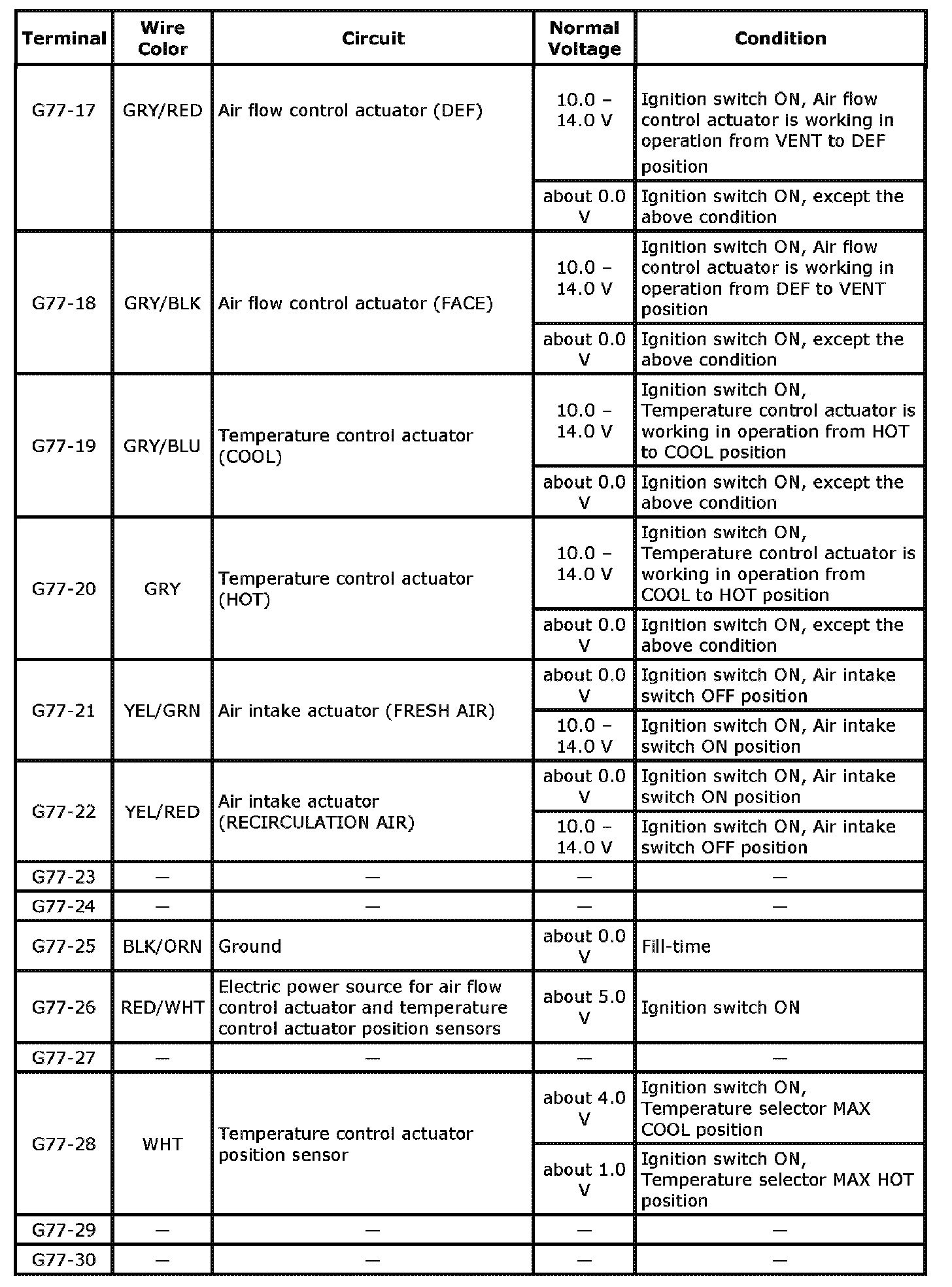 HVAC Control Module Voltage Table Part 3: