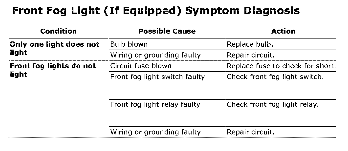 Front Fog Light (If Equipped) Symptom Diagnosis: