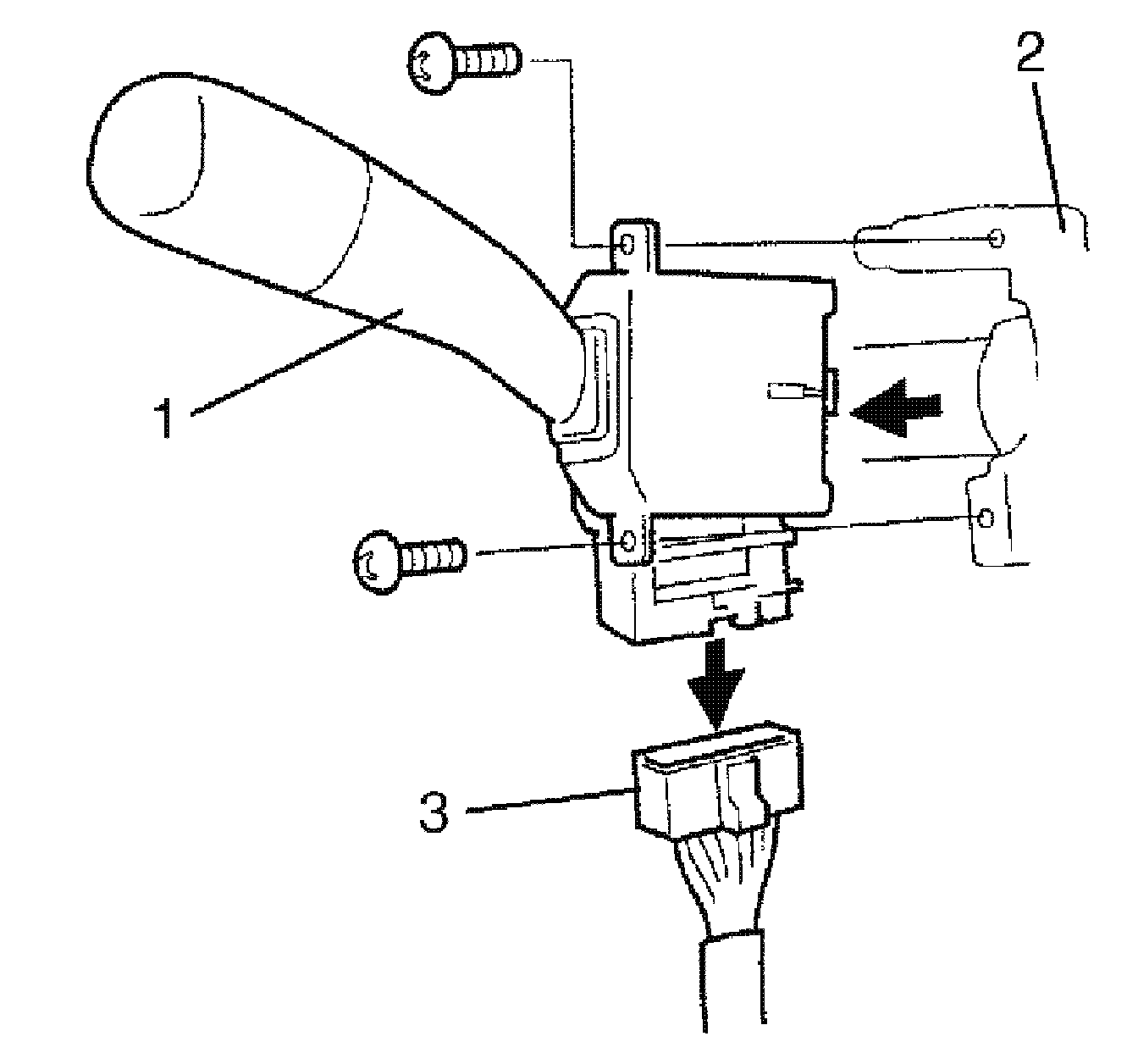 4. Remove lighting switch (1) from combination switch assembly (2) and disconnect its coupler (3).