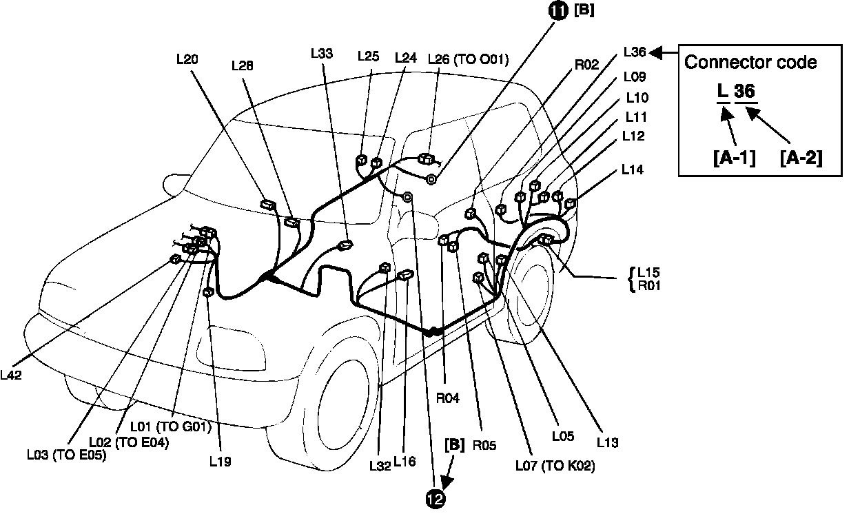 L: Floor harness, G sensor wire (Fuel pump harness)