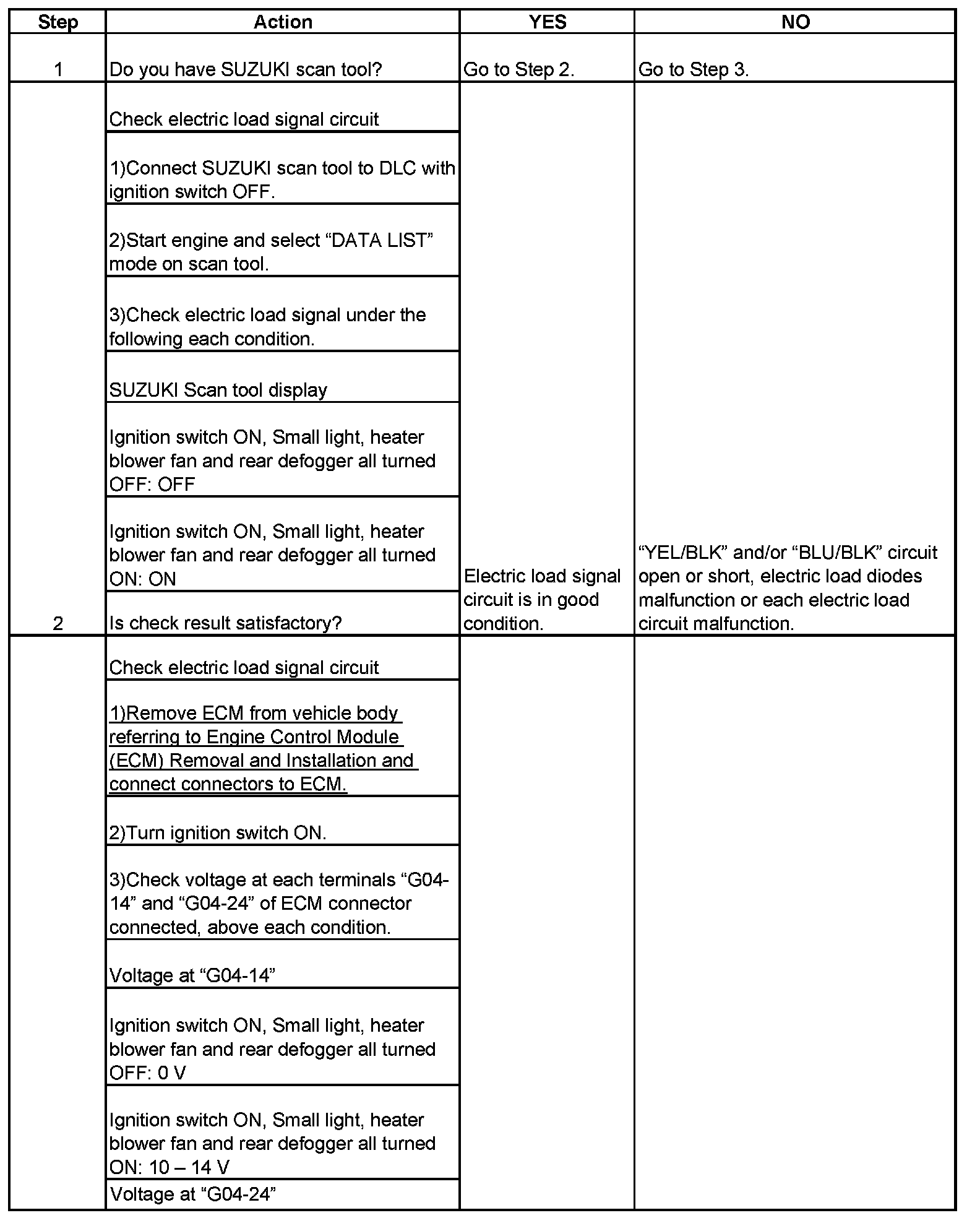 Electric Load Signal Circuit Check