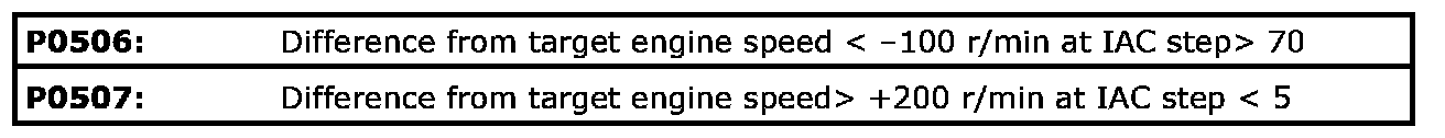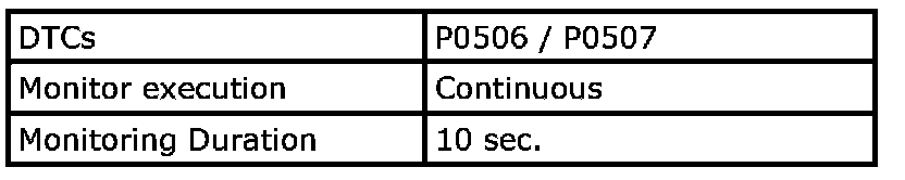 Refer to DTC P0505 / P0506 / P0507: Idle Air Control System Malfunction / RPM Lower than Expected / RPM Higher than Expected. P0505