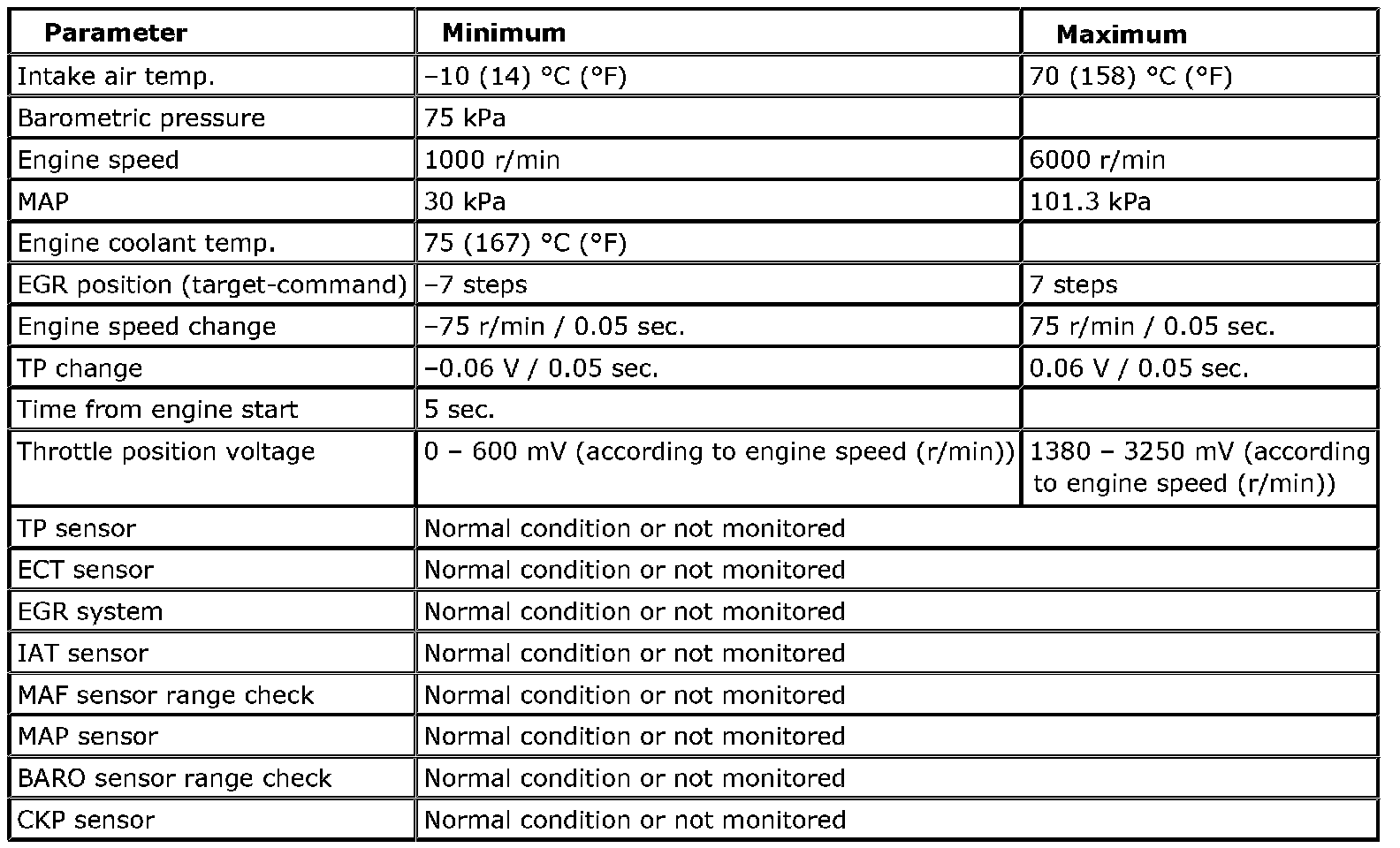 OBD System Description - Comprehensive Component Rationality MonitorMonitoring Procedure