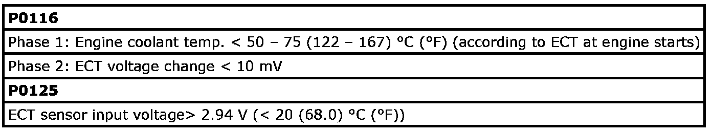 Refer to DTC P0116: Engine Coolant Temperature Circuit Range / Performance. P0116
