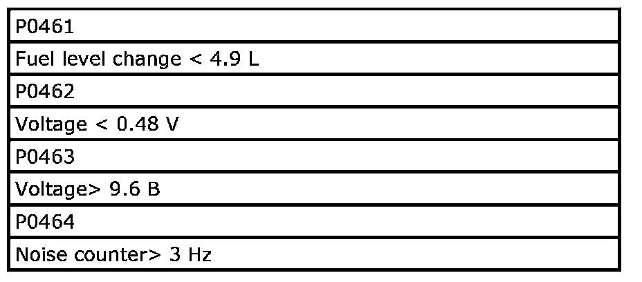 Refer to DTC P0461: Fuel Level Sensor Circuit Range / Performance. P0461