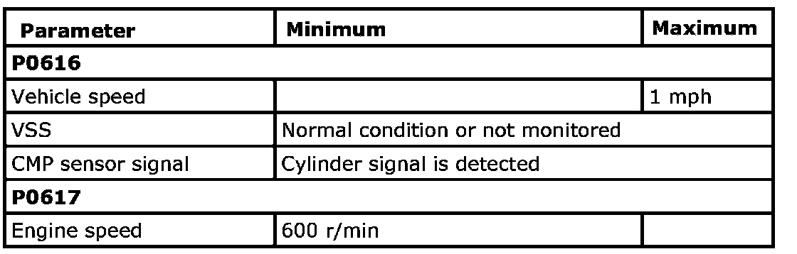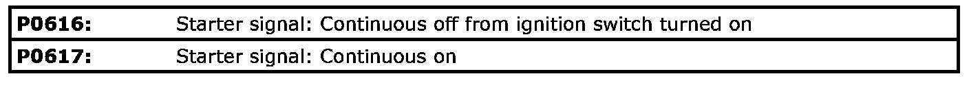 Refer to DTC P0617: Starter Relay Circuit High. P0617