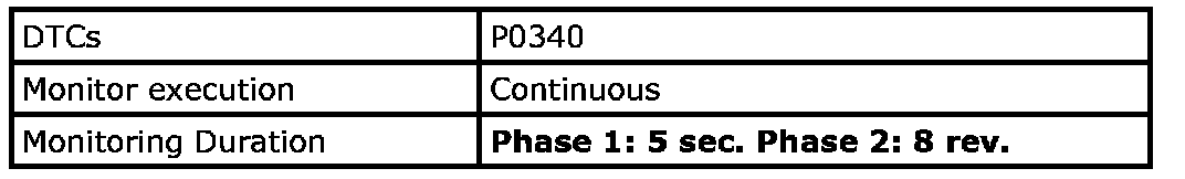 Refer to DTC P0340: Camshaft Position Sensor Circuit. P0340