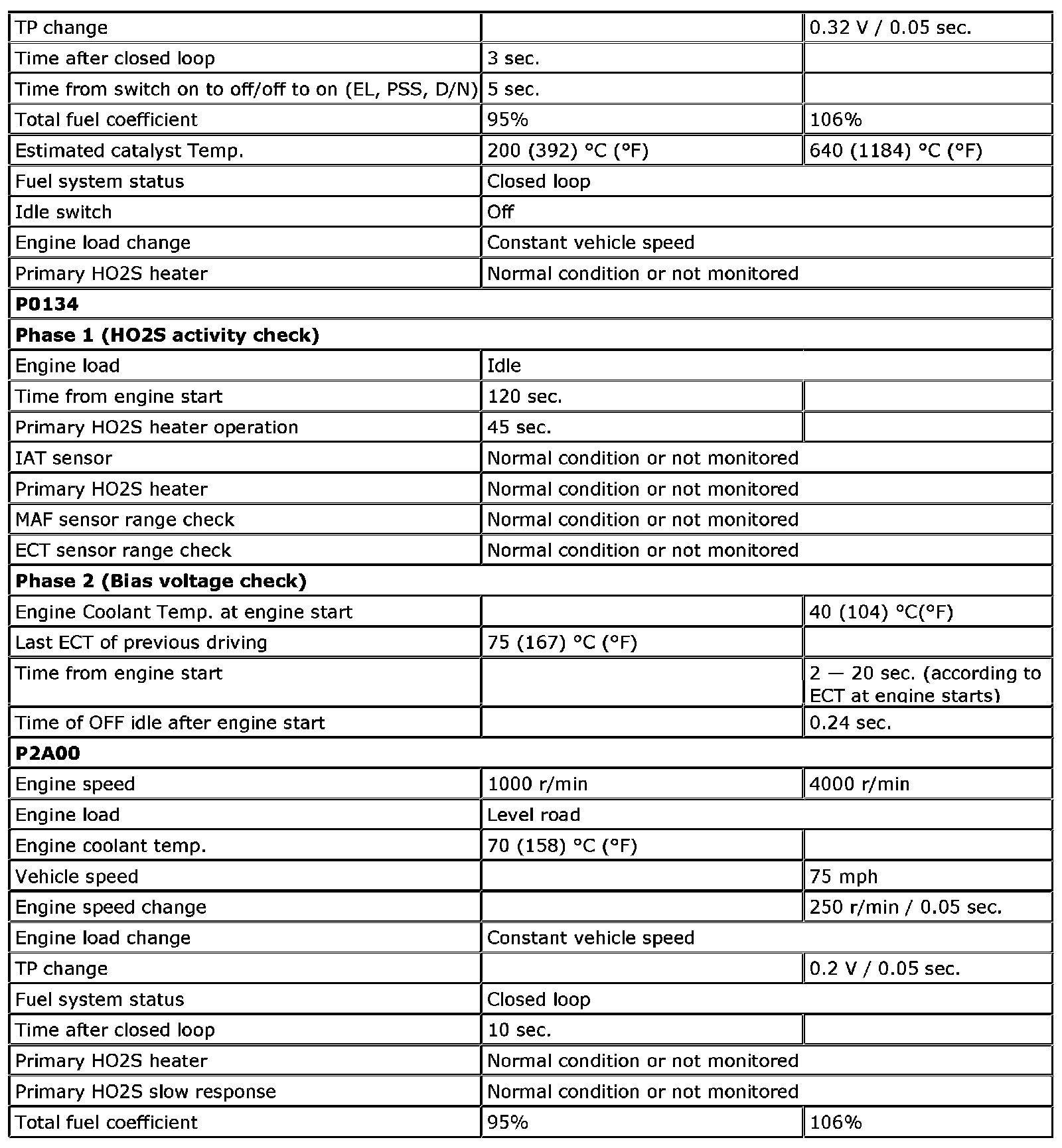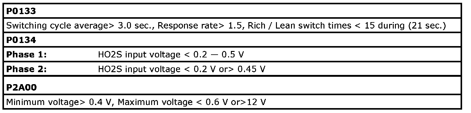 For a primary HO2S, the system monitors maximum and minimum voltage, lean-to-rich and rich-to-lean response rates, and switching cycles. The sensor is also monitored for activity continuously.