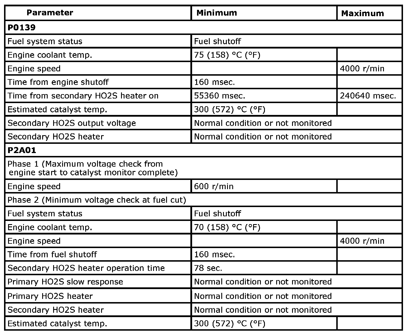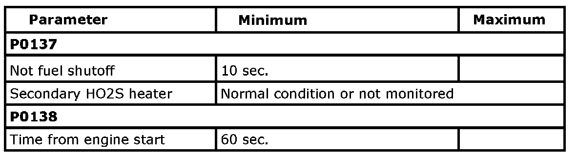 A secondary HO2S is used for catalyst monitoring and dual oxygen sensor control for fuel control system. During monitoring conditions, the system measures maximum and minimum output voltages and compares the voltage with malfunction criteria.