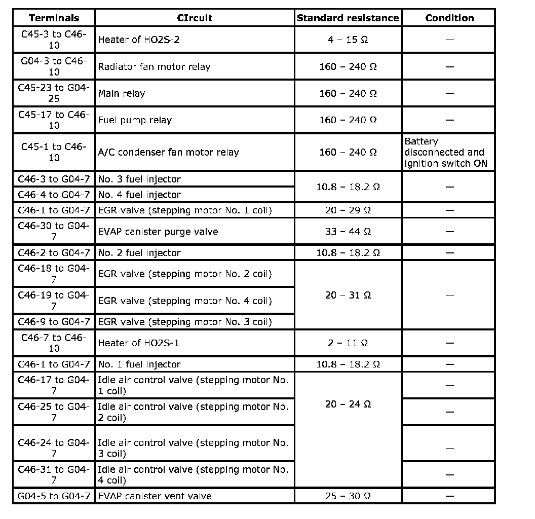 2. Check resistance between each pair of terminals of disconnected couplers as listed in the above table.