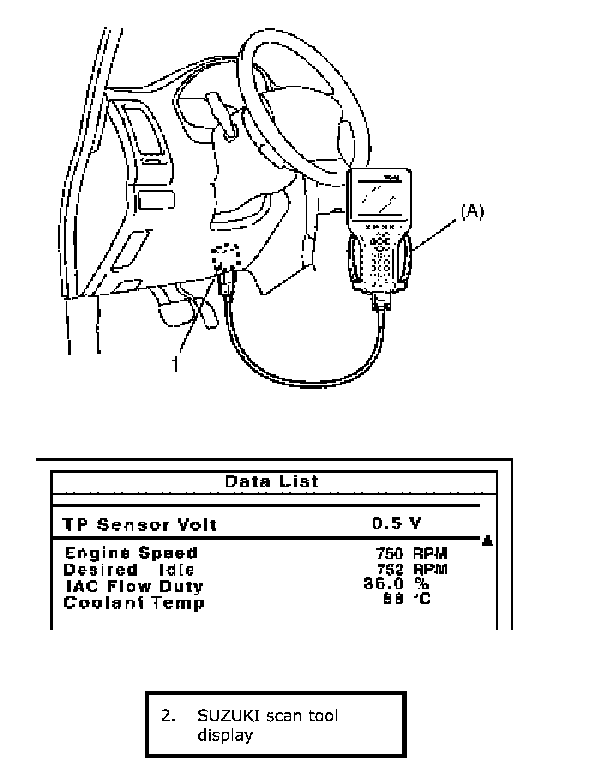 1. Connect SUZUKI scan tool to DLC (1) with ignition switch OFF.