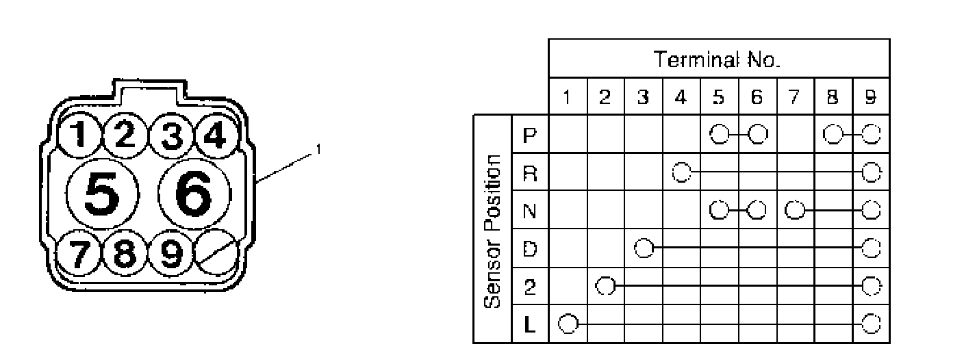1. Disconnect transmission range sensor connector (1).