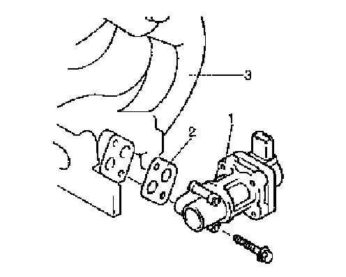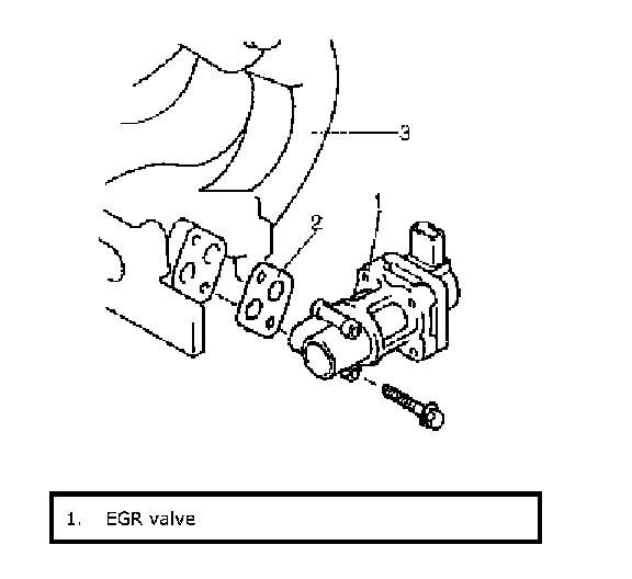 4. Remove EGR valve (1) and gasket (2) from intake manifold (3).