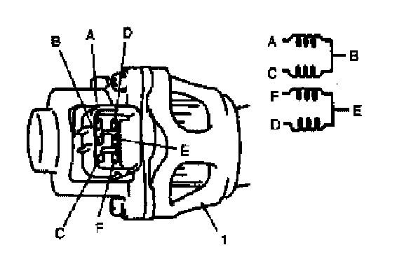 1. Check resistance between the following terminals of EGR valve (1) in each pair. If found faulty, replace EGR valve assembly.