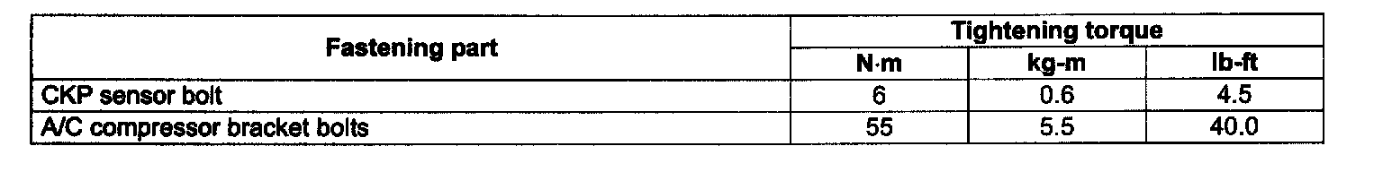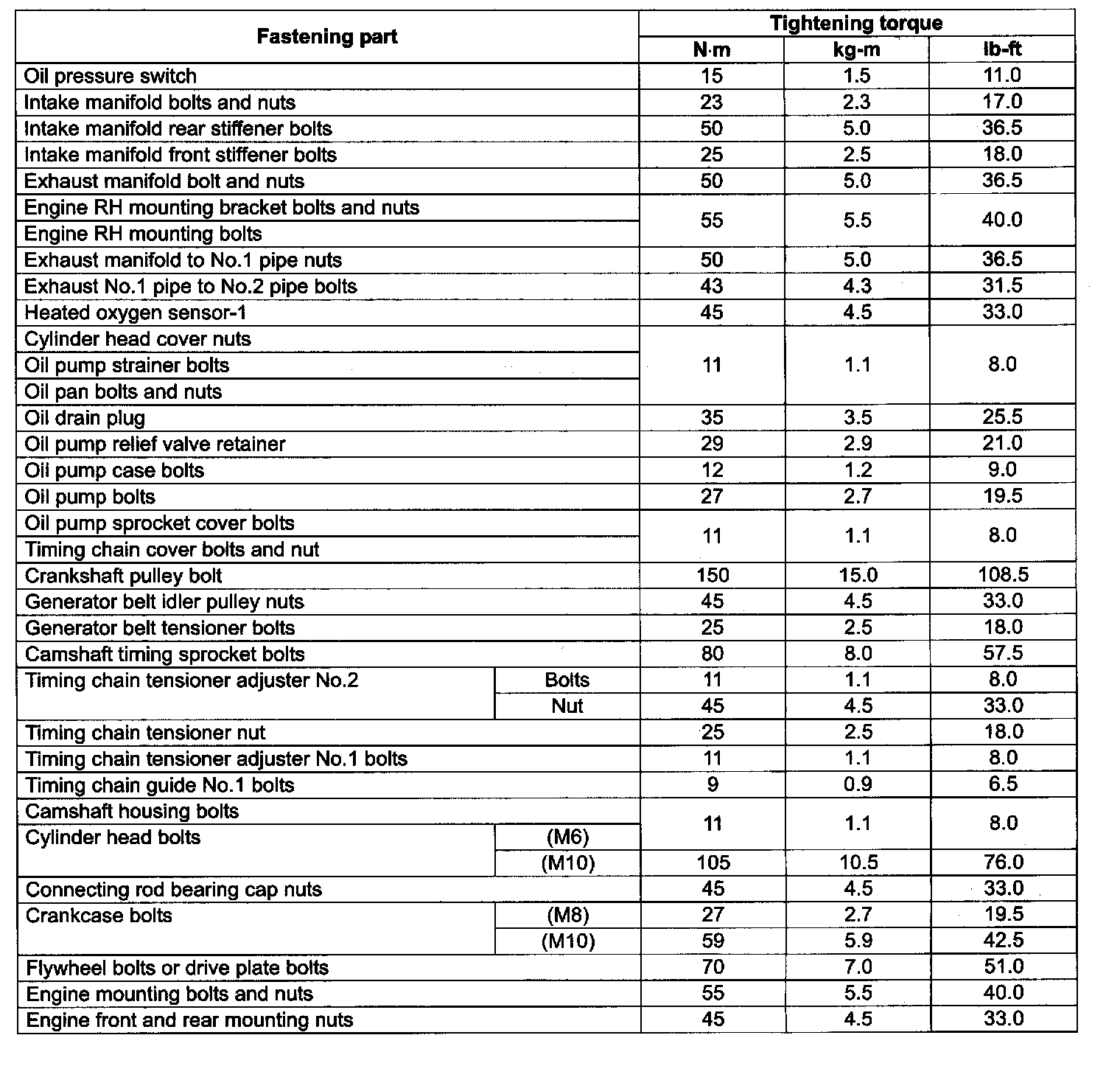 Tightening Torque Specifications