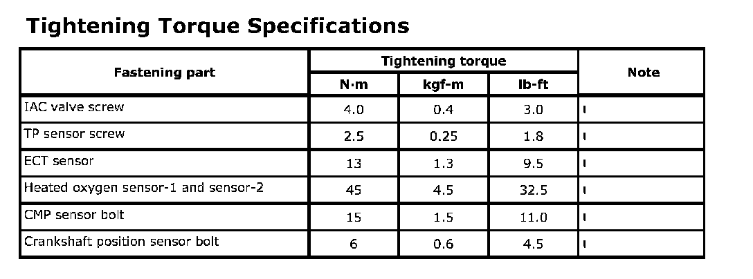 Tightening Torque Specifications