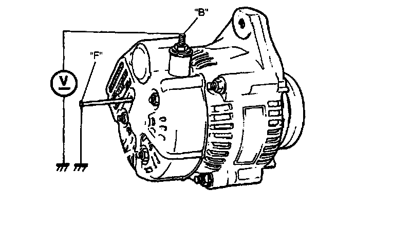 3. Ground "F" terminal and start engine, then measure voltage at "B" terminal