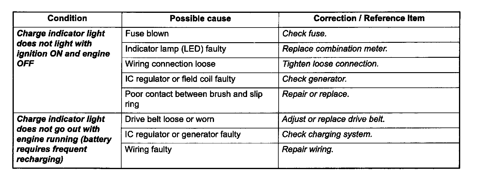 2. An undercharged battery as evidenced by slow cranking or indicator dark.