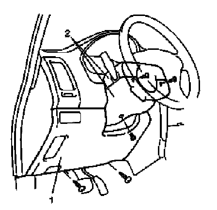 4. Remove steering column covers (2), and then turn steering wheel to remove steering column cover screws (3).