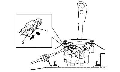 7. With both select lever and transmission range sensor kept each "N" position, drive cable end holder (1) in until it locks cable.