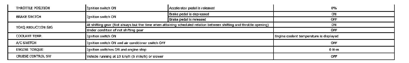 OFF: Signal which inform that lock-up inhibit signal from cruise control module is turned OFF.