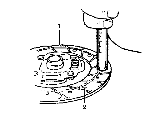 If depression is found to have reached service limit at any of rivet holes (2), replace clutch disc assembly (1).