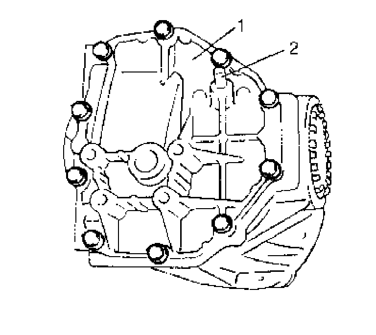 4. Using some appropriate rod (1), drive out differential side bearing outer races (2).