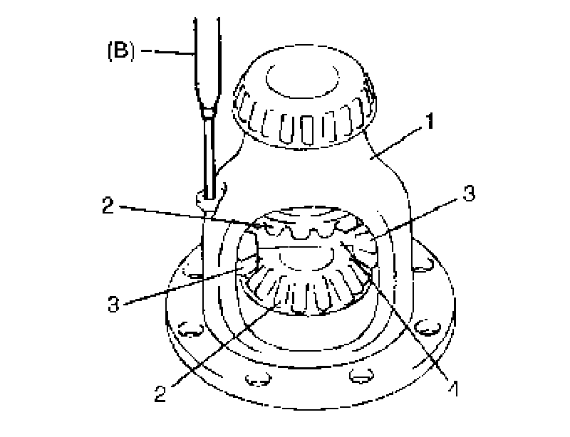 7. Remove differential side bearings (3).