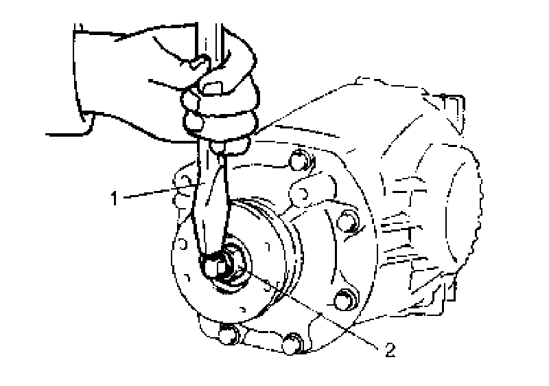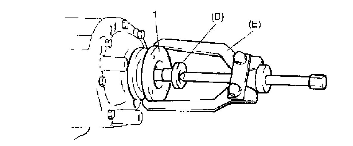 11. Remove companion flange (1) and washer from drive bevel pinion, and then drive out drive bevel pinion.