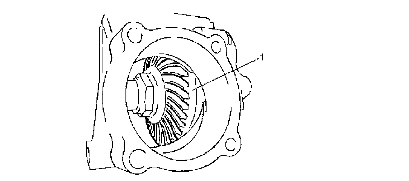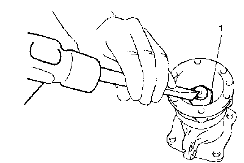 1. Measure reduction drive gear staring toque (i.e., preload of reduction idler gear taper roller bearings) by using special tool and torque wrench (1).