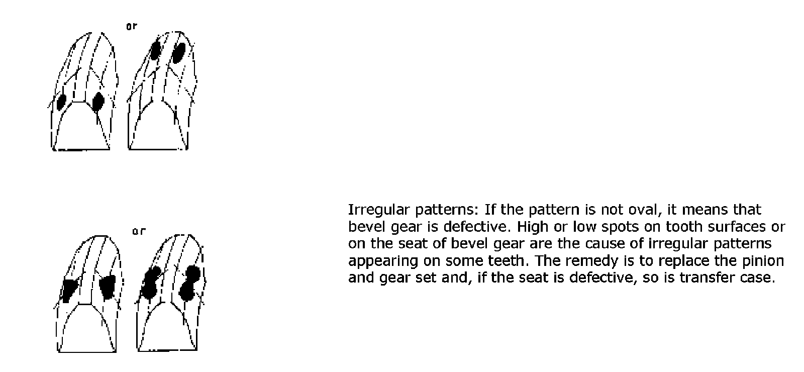 4. Bring painted part up and check contact pattern, referring to following chart. If contact pattern is not normal, readjust or replace as necessary.
