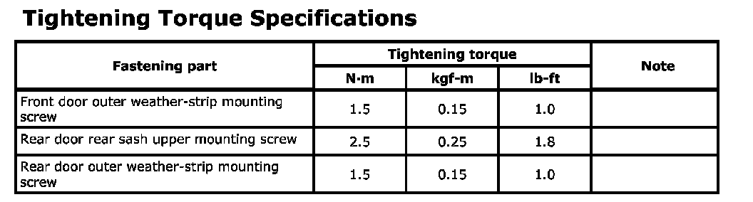 Reference: For the tightening torque of fastener not specified, refer to Fasteners Information.