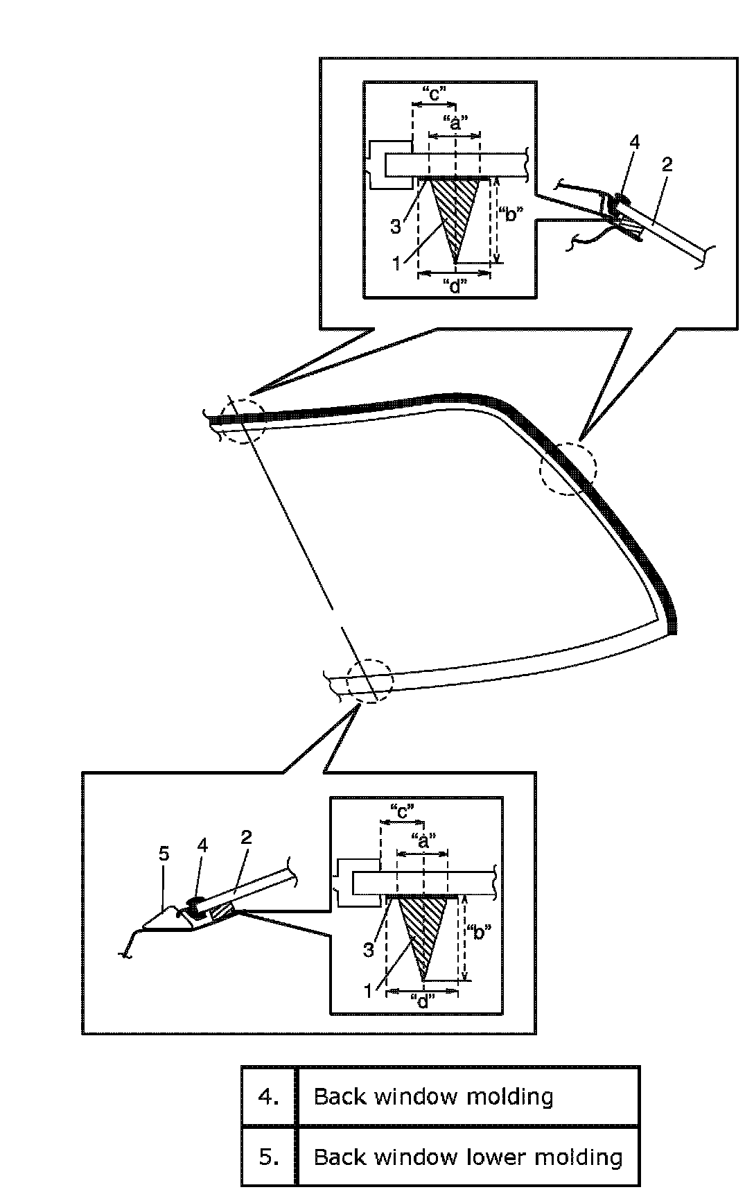 Back Window (for Sedan Model) Removal and InstallationReference: Back Window (for Sedan Model) Components