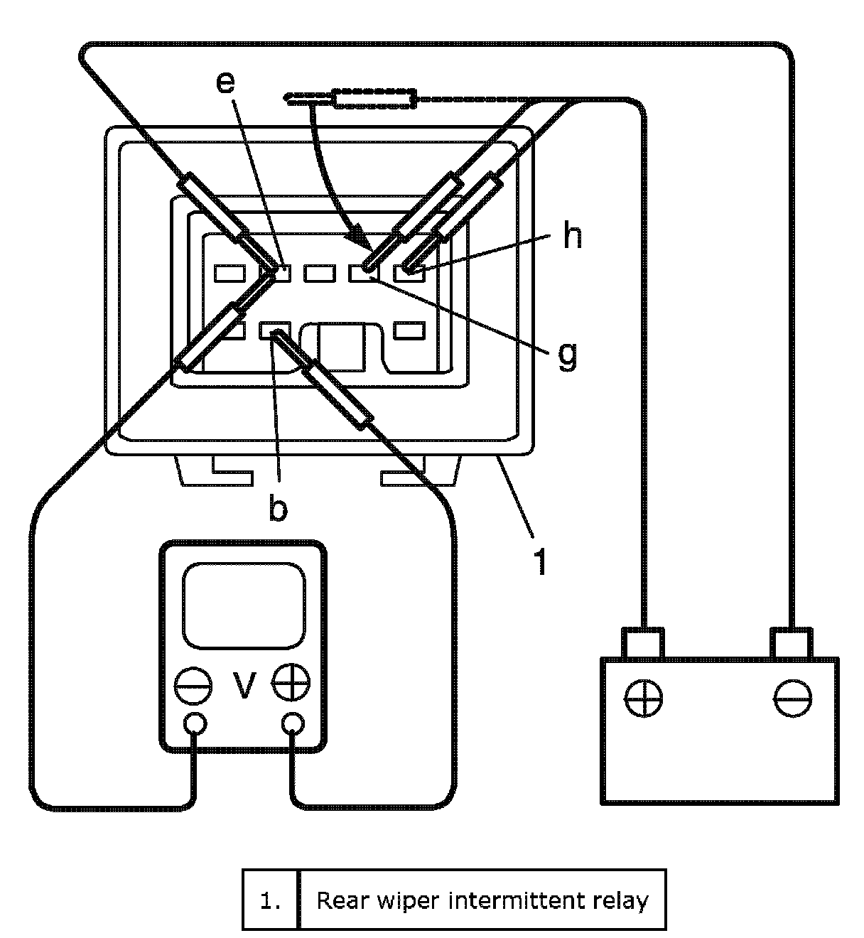 a. Connect battery positive (+) terminal to "h" terminal and battery negative (-) terminal to "e" terminal.