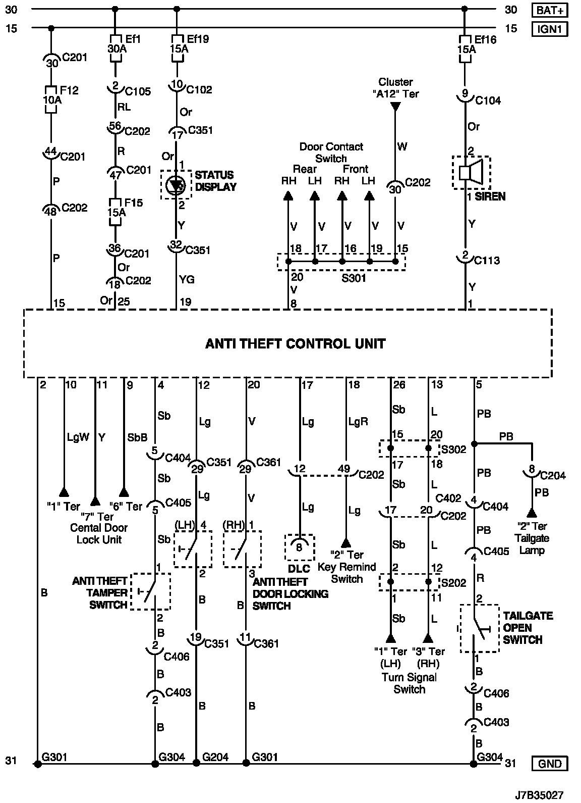 Anti Theft Control System Circuit Wiring Diagram (For STATION WAGON Model):