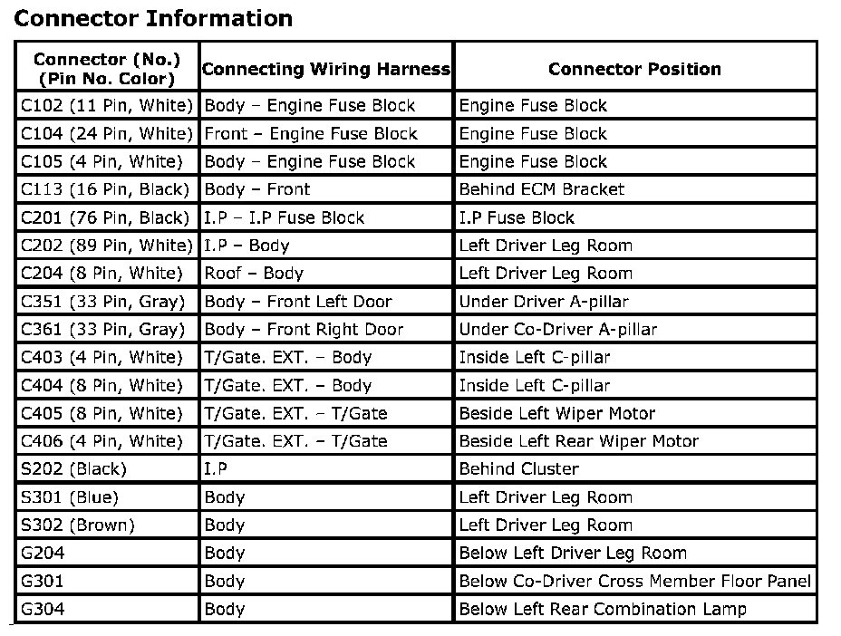 CONNECTOR IDENTIFICATION SYMBOL AND PIN NUMBER POSITION
