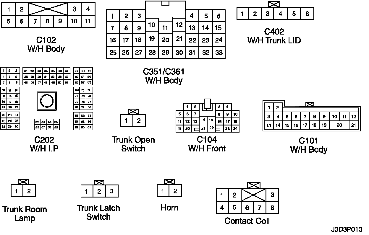 Connector Identification Symbol and Pin Number Position: