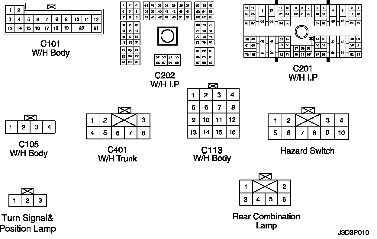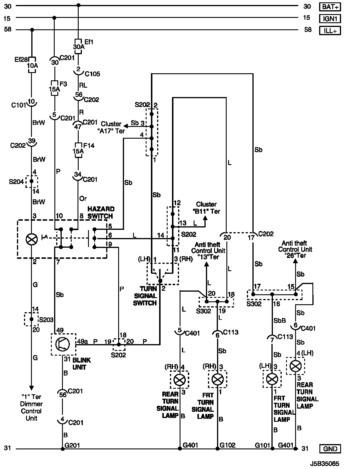 Hazard and Turn Signal Lamp Circuit Wiring Diagram (For HATCHBACK Model):