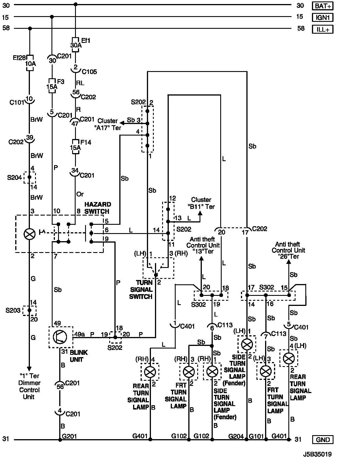 Hazard and Turn Signal Lamp Circuit Wiring Diagram (For NOTCHBACK Model Canada Only):