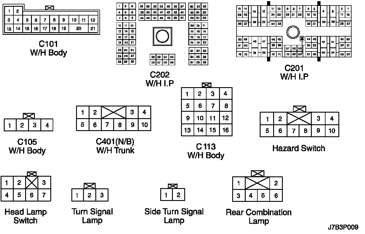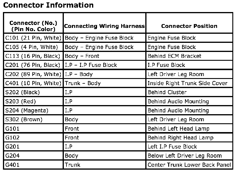 CONNECTOR IDENTIFICATION SYMBOL AND PIN NUMBER POSITION