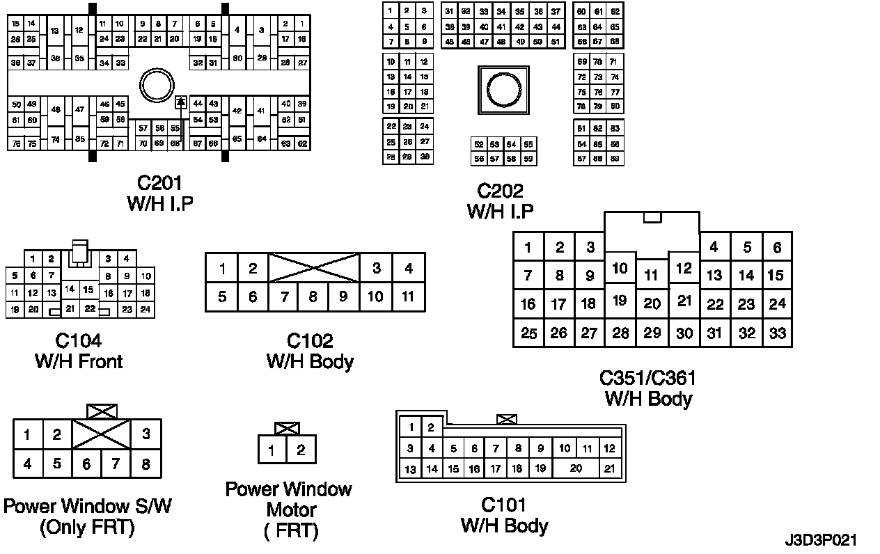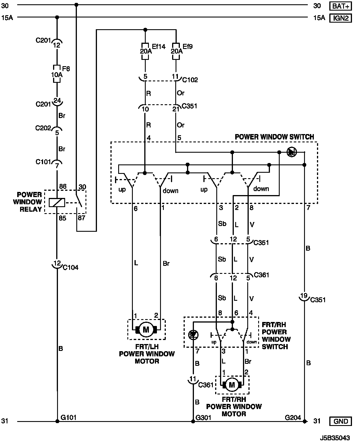 Only Front Power Window Circuit Wiring Diagram: