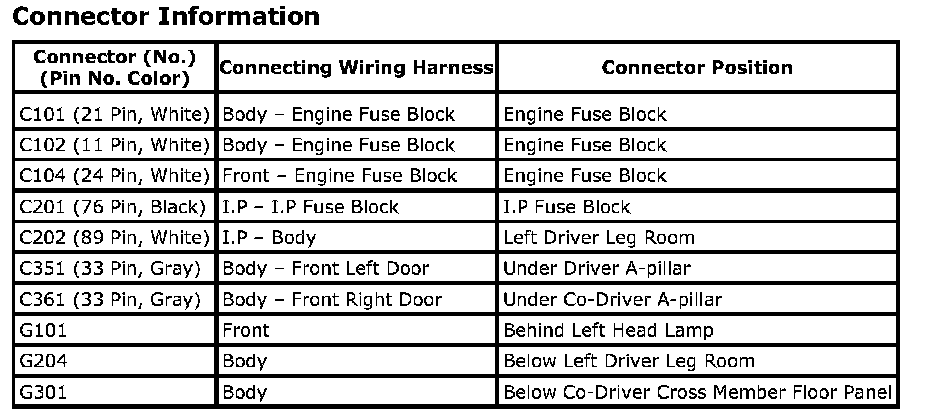 CONNECTOR IDENTIFICATION SYMBOL AND PIN NUMBER POSITION