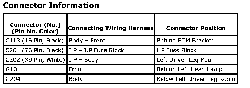 CONNECTOR INFORMATION