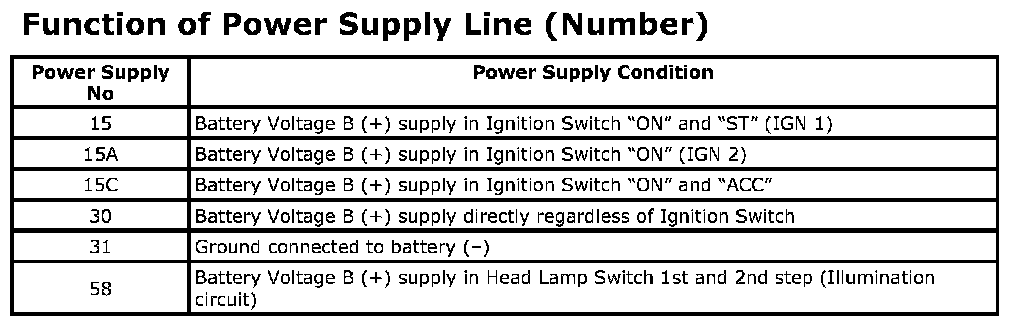 FUNCTION OF POWER SUPPLY LINE (NUMBER)