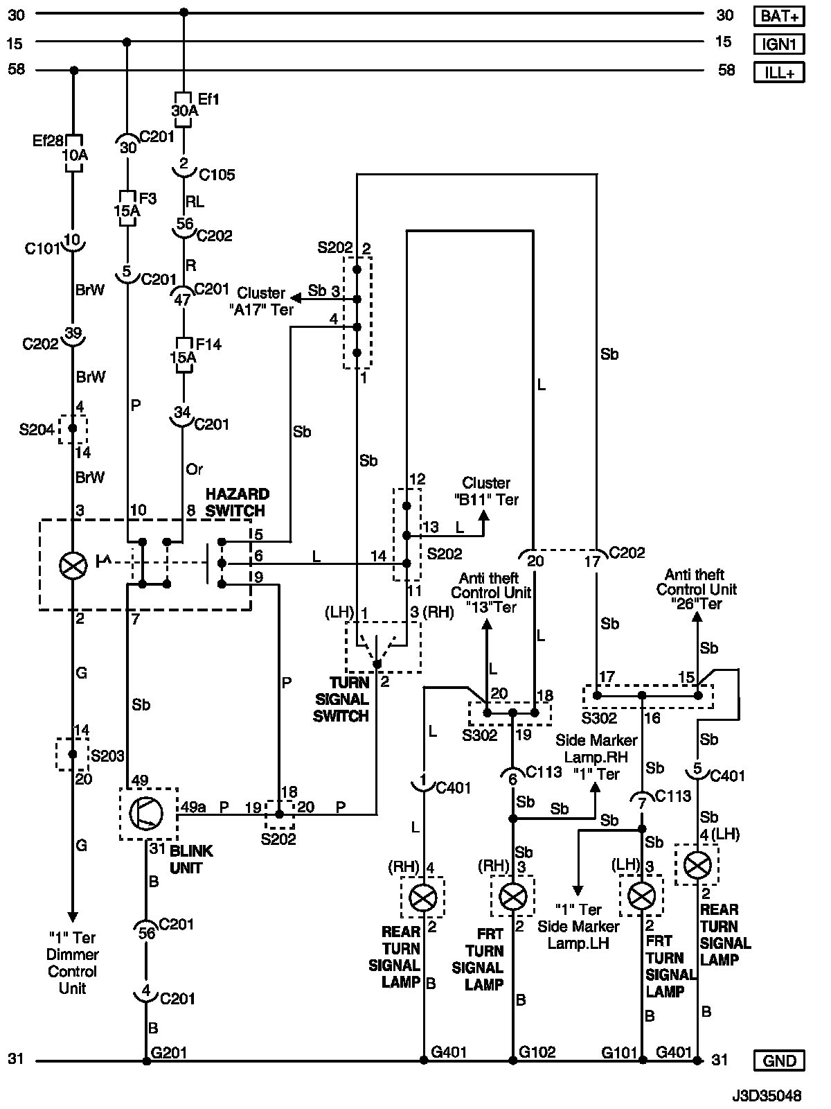 Hazard and Turn Signal Lamp Circuit Wiring Diagram (For NOTCHBACK Model):