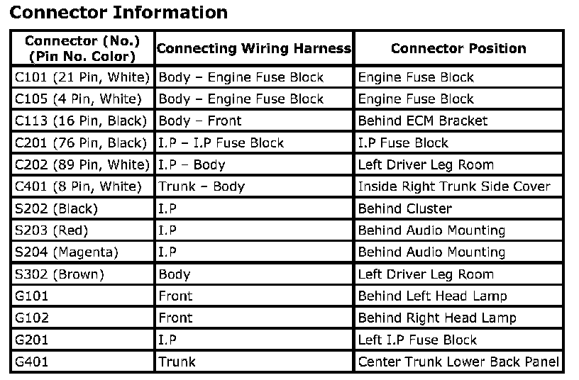 CONNECTOR IDENTIFICATION SYMBOL AND PIN NUMBER POSITION