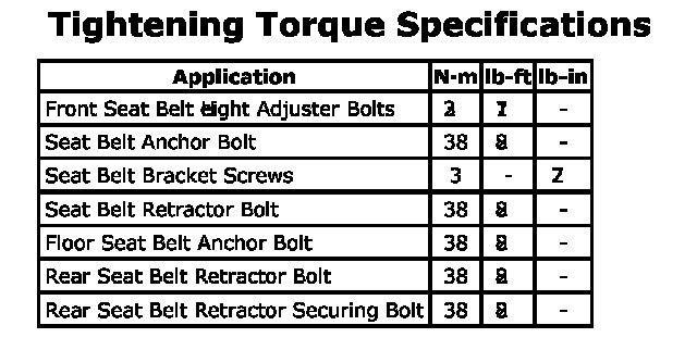 Tightening Torque Specifications: